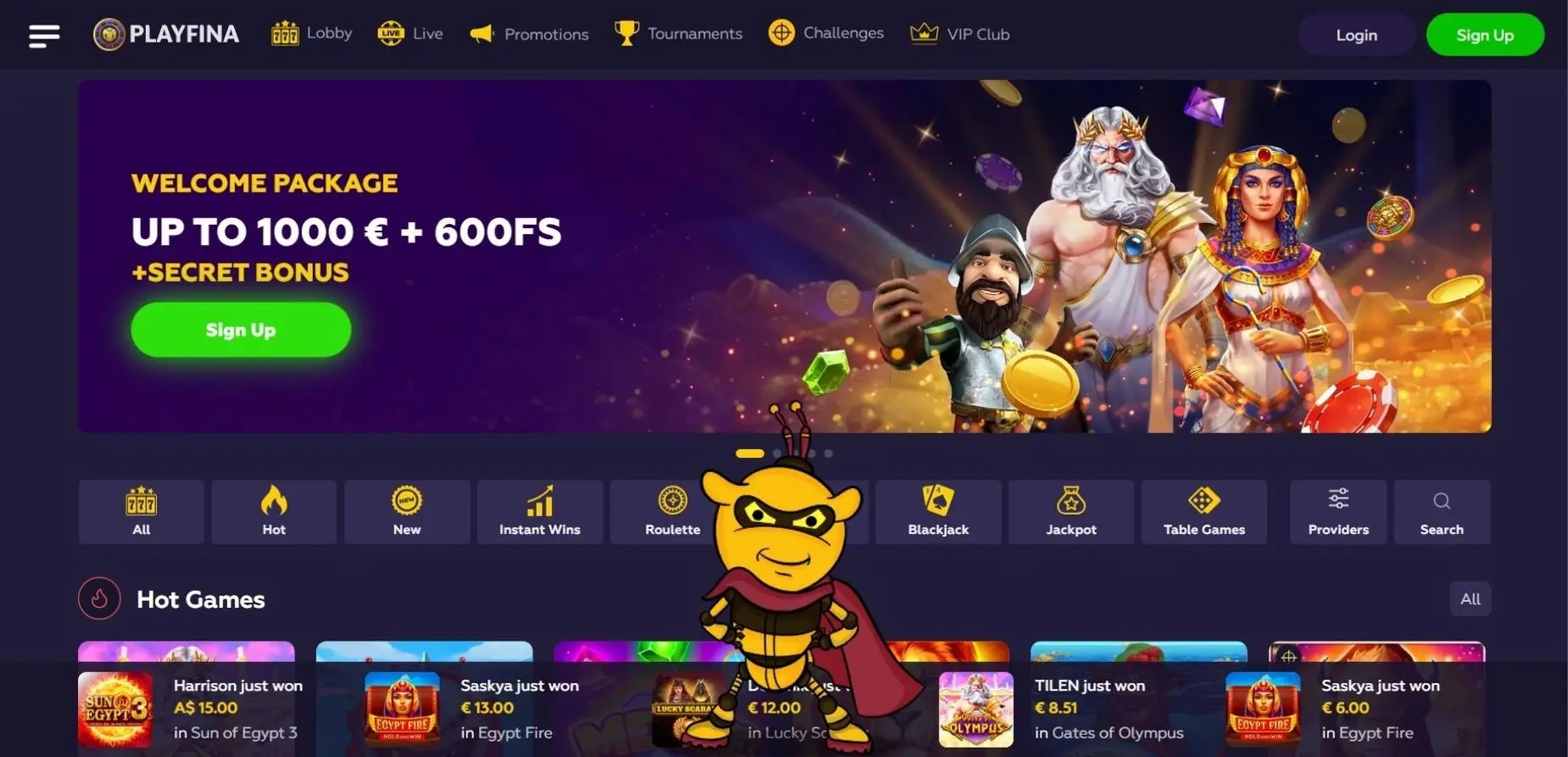 More than 11,000 slots, all varieties of blackjack, dozens of roulette games, craps, video poker, and other games are available to you at Playfina casino online The significance of ensuring a safe login on Playfina casino! Play the Best Online Casino Games at Playfina ✓ Try Slots, Blackjack, Roulette, Craps and Video Poker with Huge Bonuses. Playfina Casino How to Start Up to 1000€ + 200 FS + Secret Bonus... Playfina Casino - Bonus Codes – 50 Free Spins!